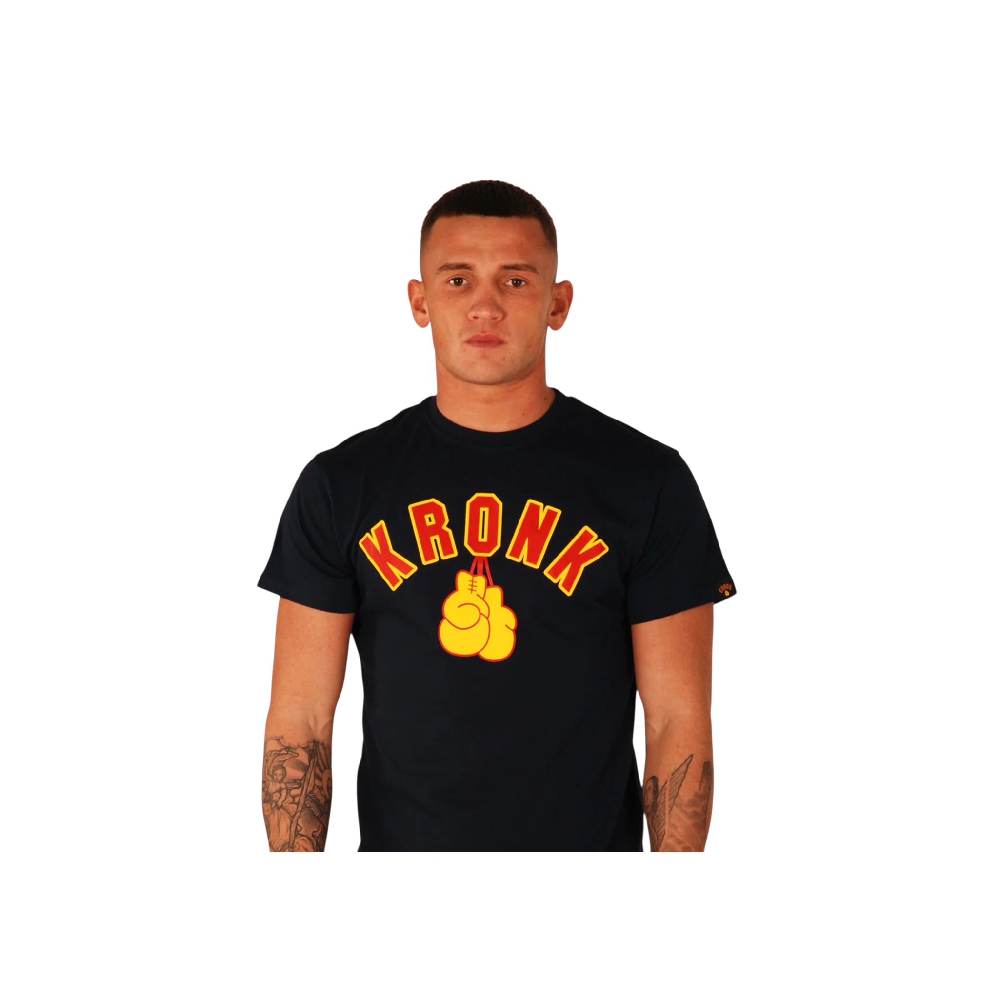 Get Stylish with the KRONK Gloves Regular Fit T-Shirt, made for fans and fighters this T-Shirt was carefully made from a 100% pre-shrunk cotton and features a bold KRONK Gloves chest print making sure to honour Detroit’s boxing heritage. With a seamless collar and double-stitched hems, it offers a very comfortable T-Shirt. The KRONK Available in Black, Navy, and Yellow, it’s perfect for UK boxing or just casual wear.